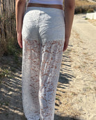 Pièce forte de la saison, ce pantalon en dentelle ajourée dévoile subtilement les jambes tout en assurant confort et maintien grâce à son short intégré en coton.