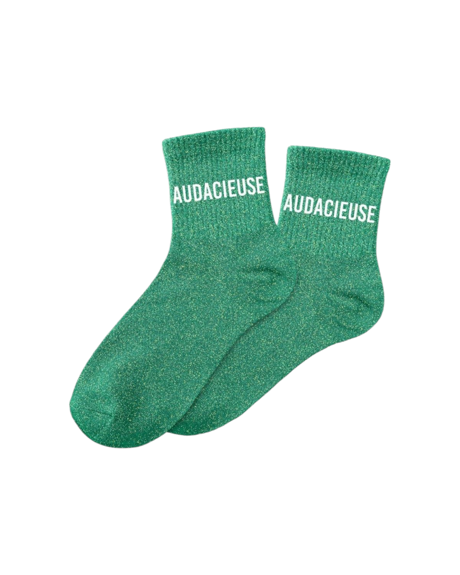 Affirmez votre personnalité avec style grâce à ces chaussettes “Audacieuse” au fini pailleté ! Leur maille verte scintillante apporte une touche pétillante et tendance à vos tenues, tout en restant ultra-confortable.