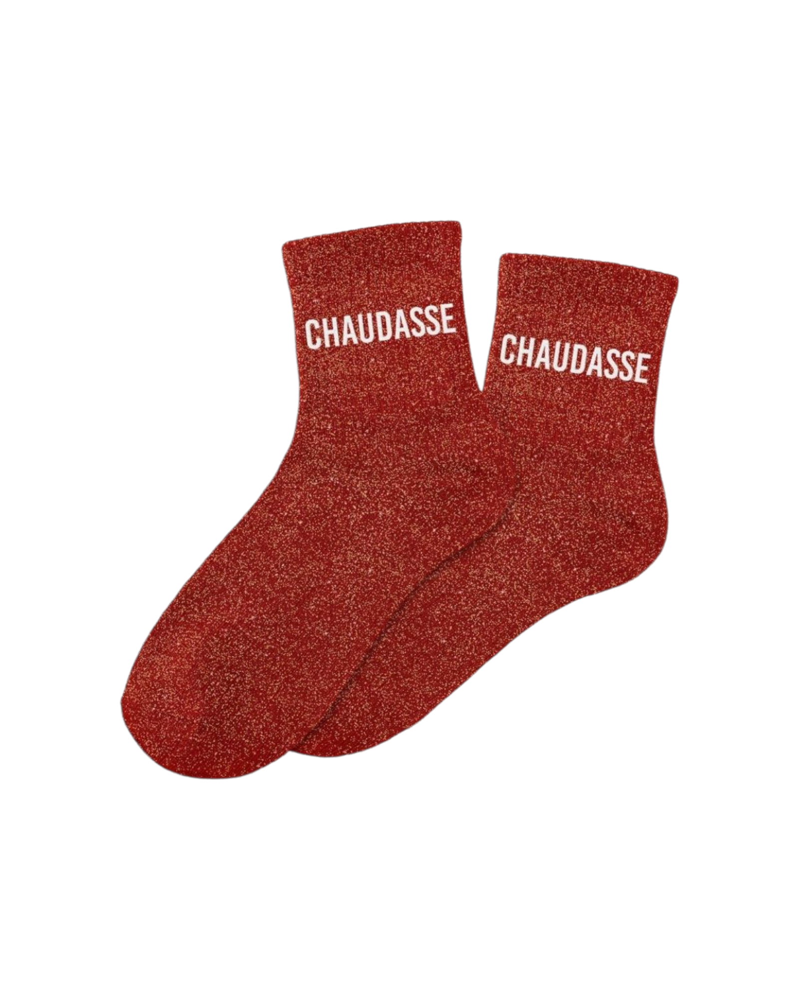 Osez l’audace avec ces chaussettes “Chaudasse” pleines de caractère et d’éclat ! Leur maille rouge pailletée attire tous les regards et apporte une dose de fun et de confiance à vos looks, du plus décontracté au plus festif.
