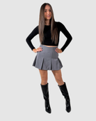 La jupe incontournable pour un look girly et tendance ! Avec sa coupe patineuse plissée et sa taille haute, elle flatte la silhouette et se porte aussi bien en mode casual avec des baskets qu’en version plus chic avec des bottes.