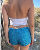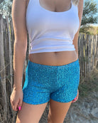 Inspiré des outfits d’Ibiza et de la tendance phare de l’été, ce short à sequins est une pièce forte et lumineuse. Porté en taille basse comme sur la photo, il crée un look à la fois sexy, fun et affirmé.