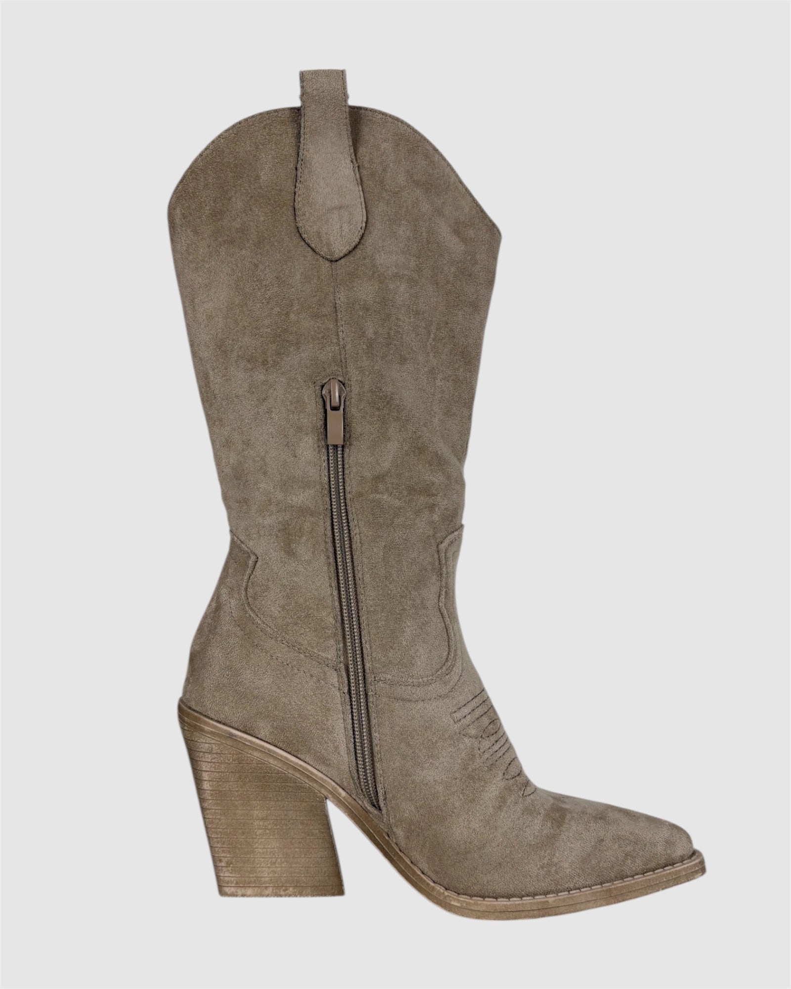 Craquez pour ces bottes western en suédine taupe, parfaites pour un look tendance et affirmé. Leur design inspiré du Far West revisité apporte une touche bohème chic à toutes vos tenues. Fabriquées en matière douce effet daim, elles offrent un confort optimal et un style raffiné.
