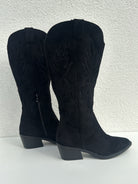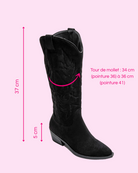 Broderies ton sur ton, suédine douce, bout pointu affirmé : ces bottes structurent la silhouette et ajoutent une vraie touche de caractère à vos looks. Disponibles en noir, taupe et beige clair.