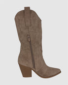 Optez pour le charme du style western revisité avec ces bottes à franges en suédine taupe. Leur design tendance mêle élégance et caractère grâce à leurs franges latérales et leur matière douce effet daim.