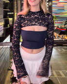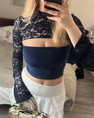 Ce haut en dentelle ajourée révèle un top 100% coton intégré en dessous, pour un jeu de transparence maîtrisé. Coupe parfaite, matière travaillée, détails uniques : c’est le genre de pièce qu’on garde à vie.