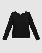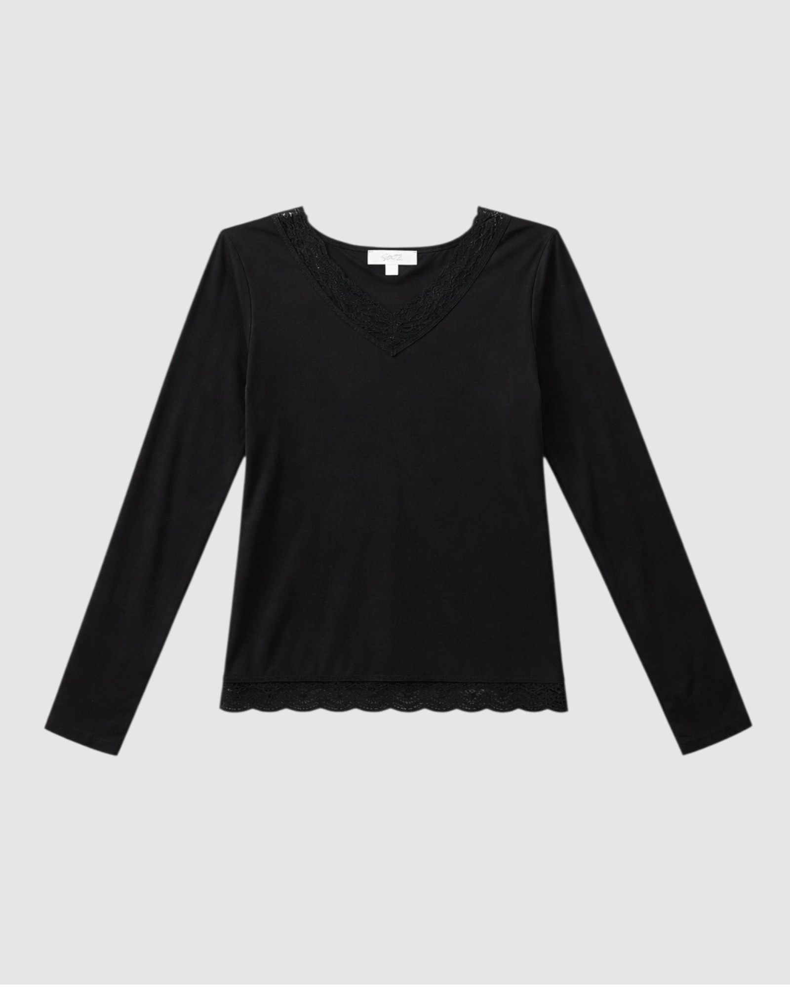 Ce top noir à manches longues allie élégance et féminité avec subtilité. Confectionné dans une matière douce et fluide, il offre un tombé confortable et agréable à porter au quotidien.