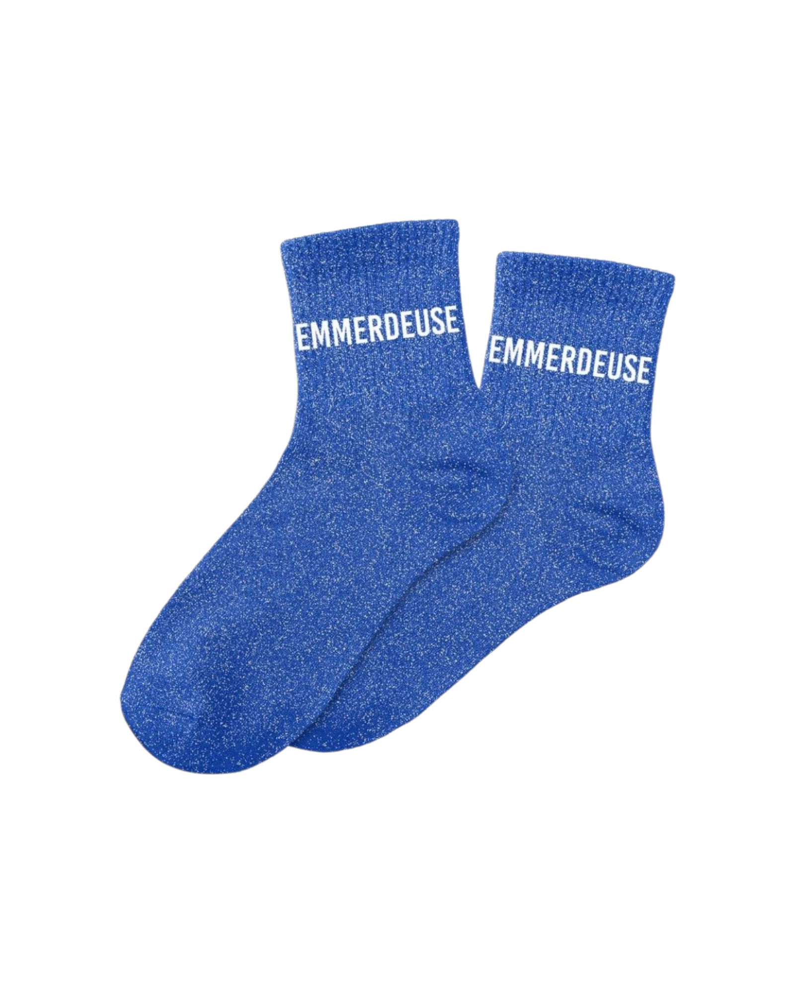 Pour les fortes têtes au grand cœur 💙 ! Ces chaussettes “Emmerdeuse” assument avec humour et style leur caractère bien trempé. Leur maille bleue pailletée apporte une touche électrique et brillante à vos tenues, idéale pour affirmer votre personnalité unique.