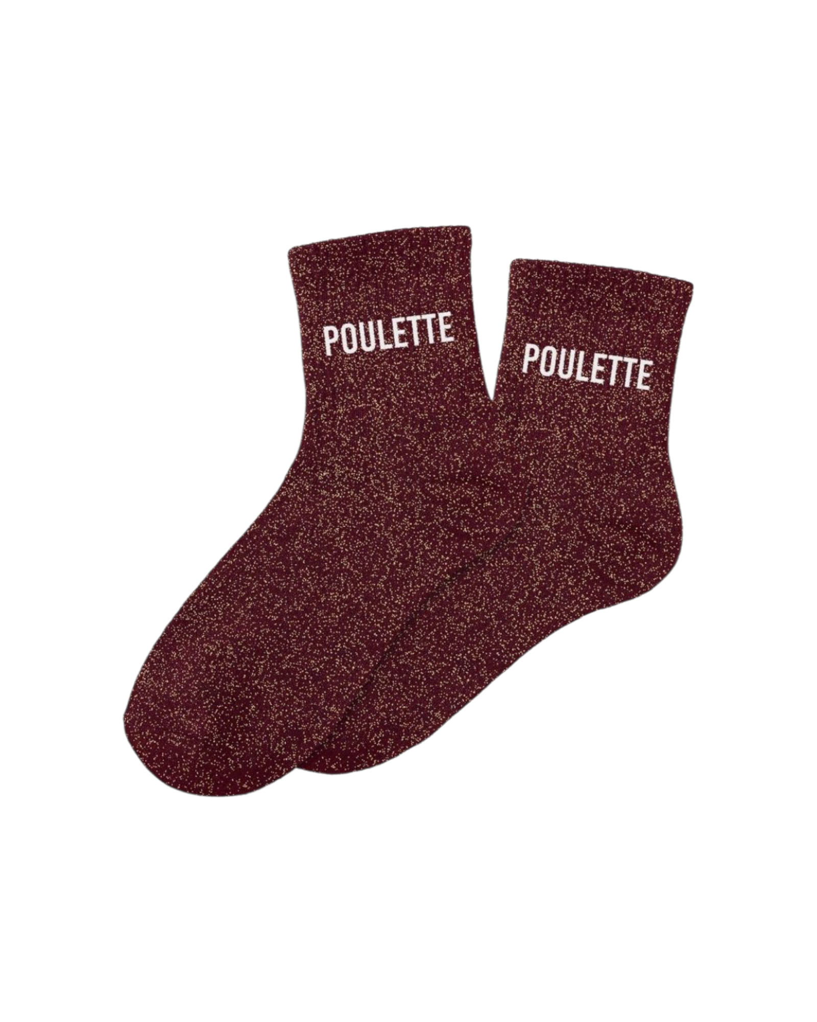 Apportez une touche d’éclat et de bonne humeur à votre style avec ces chaussettes “Poulette” pailletées ! À la fois confortables et pleines de caractère, elles allient douceur et brillance pour accompagner vos tenues avec originalité et légèreté.