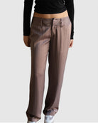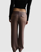 Ce pantalon tailleur à rayures fines revisite un classique avec une touche moderne et élégante. Sa coupe droite allonge la silhouette tandis que sa taille basse apporte une allure tendance et affirmée.