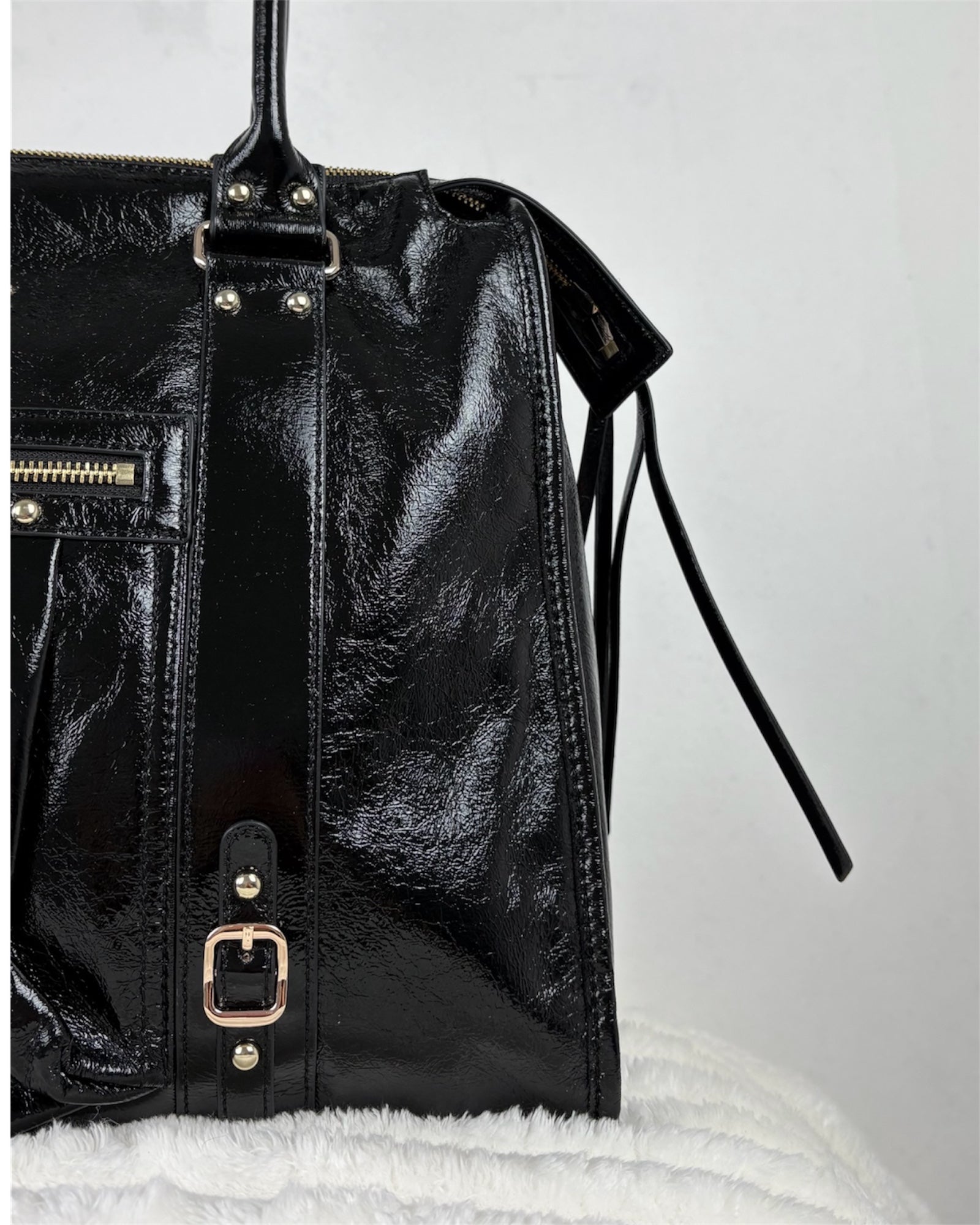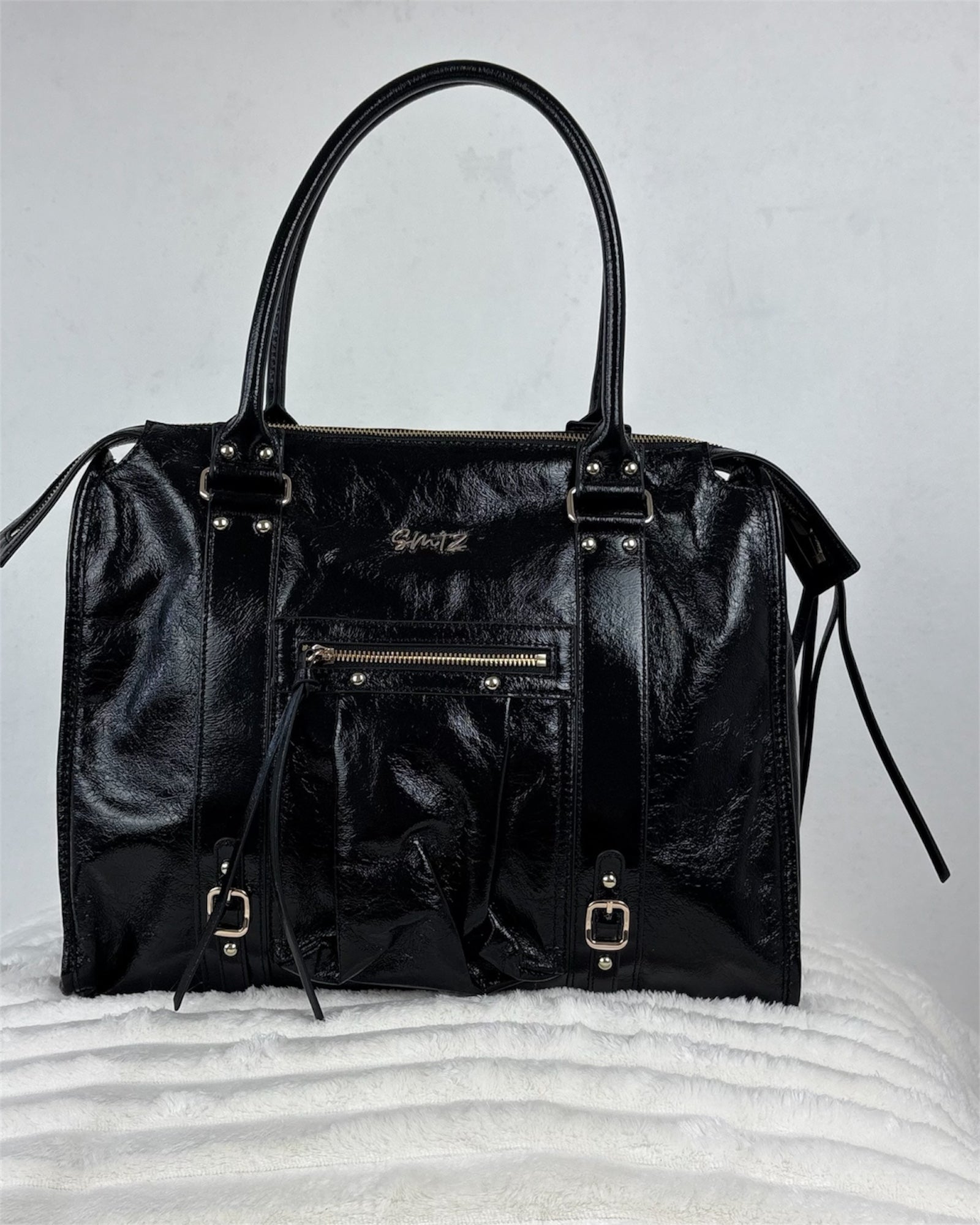 Conçu en simili cuir irisé, ce sac structure vos looks avec élégance. Son format généreux permet d’emporter un ordinateur portable, plusieurs cahiers ou manuels, ainsi que tous vos essentiels du quotidien.