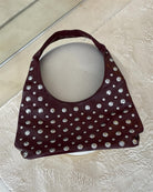 Sac épaule effet vernis, orné de clous métalliques pour un look tendance et affirmé. Son format pratique permet de l’utiliser au quotidien tout en apportant une touche mode et originale à vos tenues.