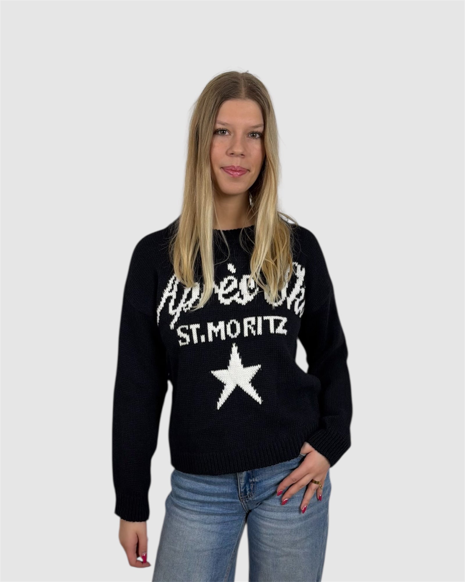 Chaud, tendance et irrésistiblement cosy, ce pull “Après Ski – St. Moritz” est la pièce idéale pour la saison hivernale. Avec son inscription stylée et son étoile contrastée, il apporte une touche montagne chic à toutes vos tenues.