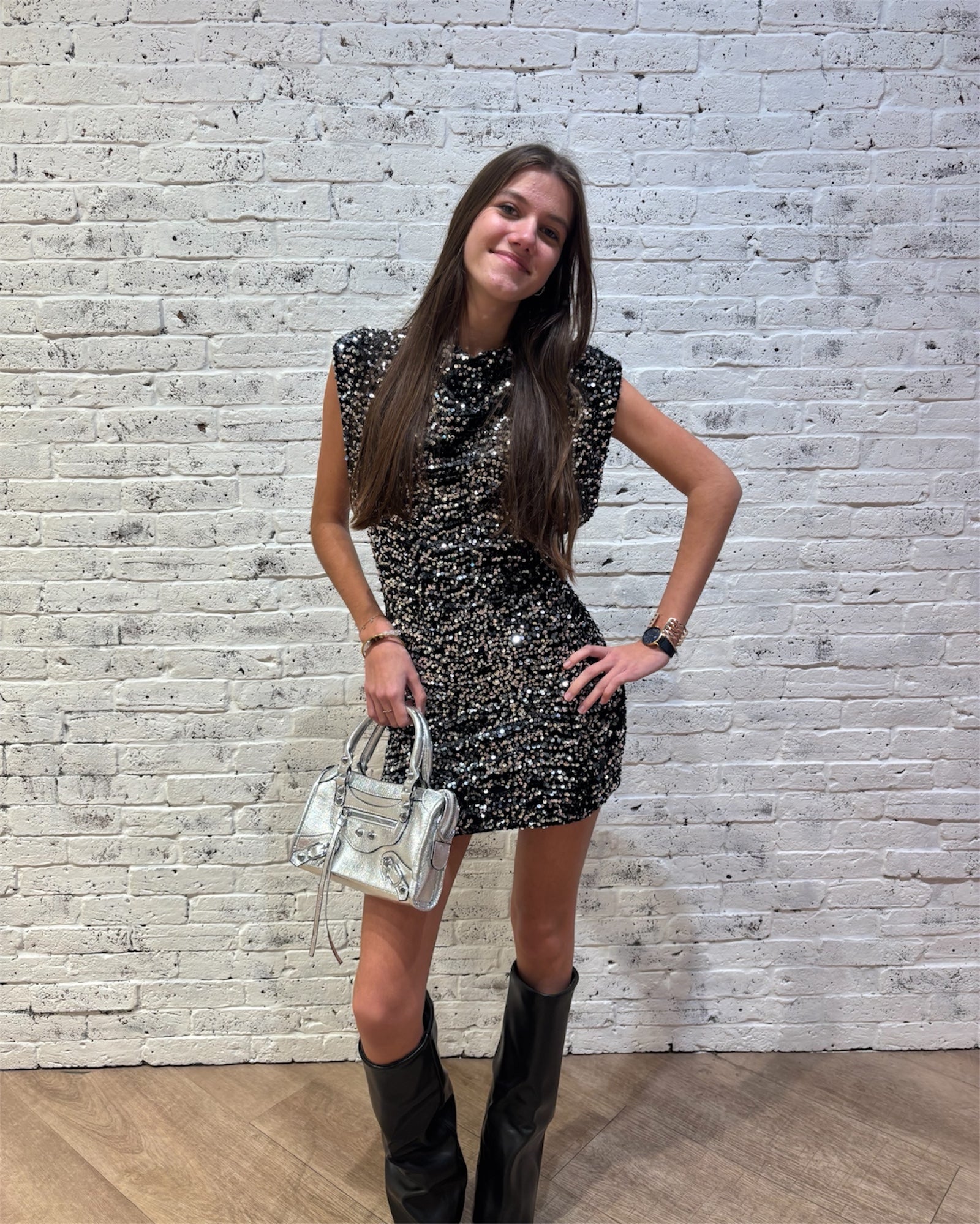 Ultra chic et résolument glamour, la robe FANNY est la pièce idéale pour briller lors de vos soirées. Son tissu entièrement parsemé de sequins capte la lumière avec élégance, tandis que son décolleté en V met subtilement en valeur le buste. Sa coupe flatteuse épouse la silhouette tout en restant confortable. Portée avec des talons ou des accessoires sobres, elle devient une tenue irrésistible et sophistiquée.