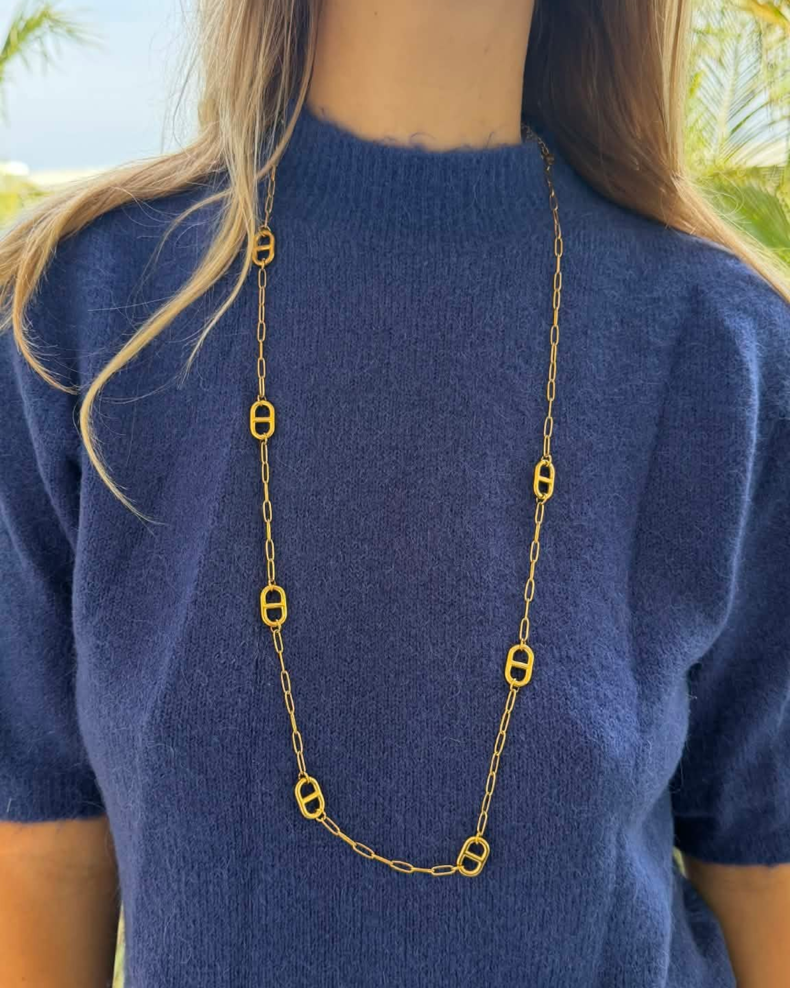 Sautoir en acier inoxydable, hypoallergénique, résistant à l’eau (mer, piscine, douche, plage…), conçu pour être porté au quotidien sans altérer sa couleur ni son éclat.